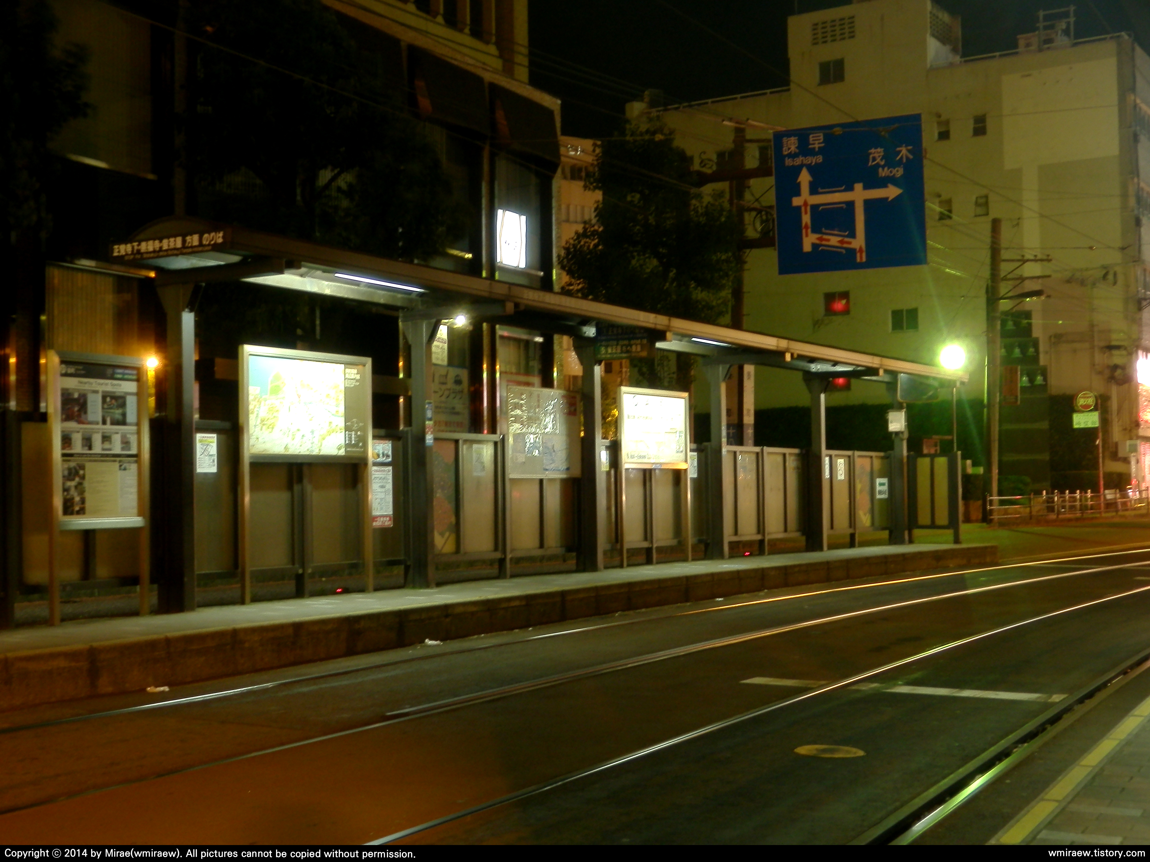 고요한 밤의 역은 이따금씩 찾아오는 나가사키 전차가 반가울 따름입니다.