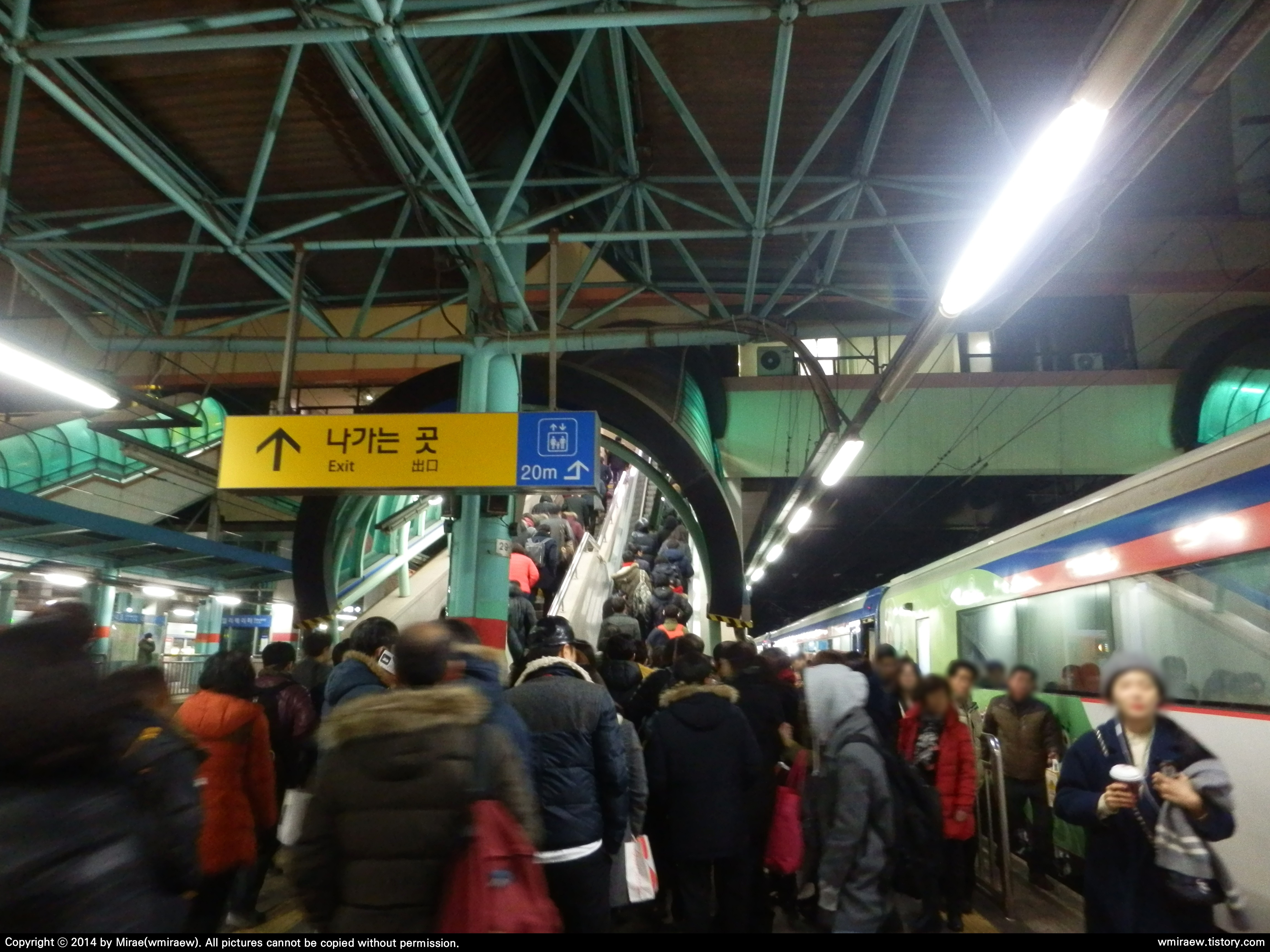 역사로 올라가는 통로가 좁은지라 더 혼잡해 보이는 것일 수도 있겠네요.
