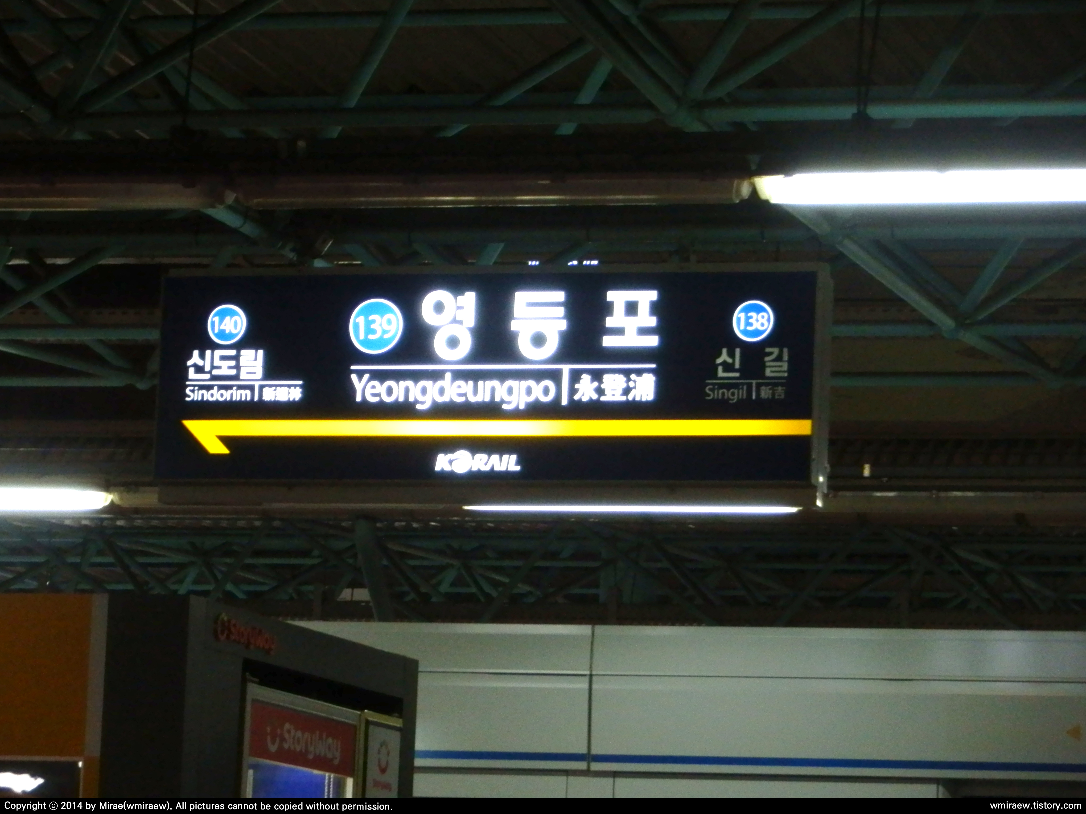 영등포역에서 색이 바랜 행선판, 그리고 2014 내일로의 마지막 열차와 작별했습니다.
